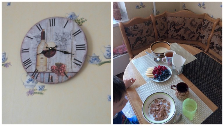 Ура! Завтрак готов! Одела малыша, почистили зубки и за стол! Время - 8-15