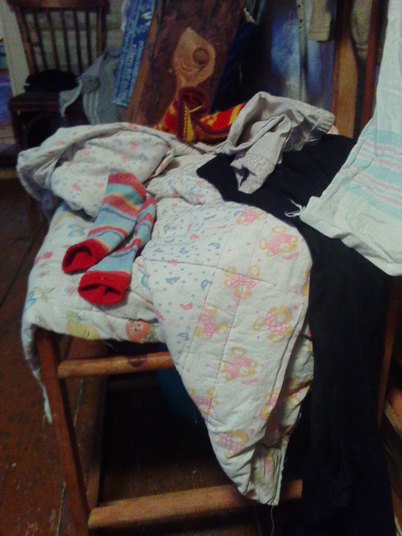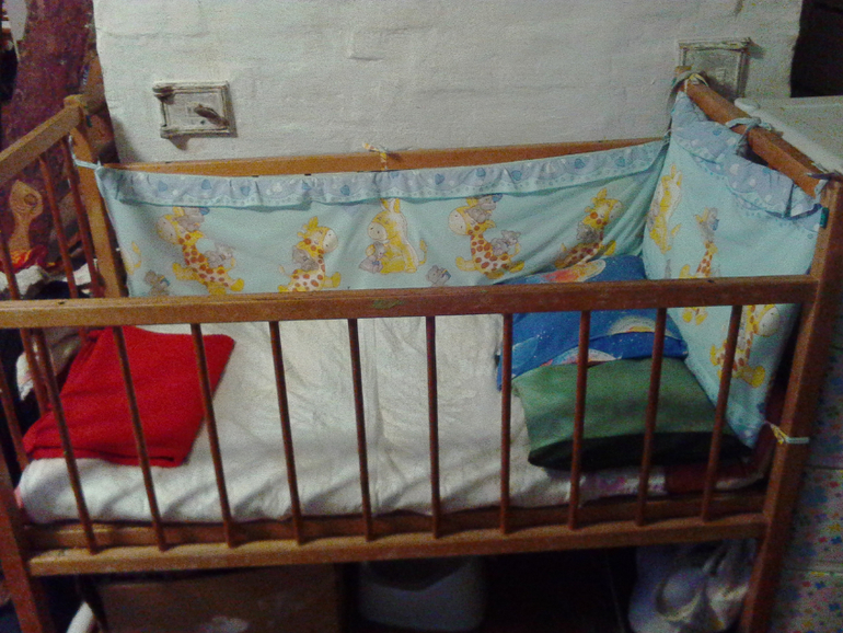 №2 кроватка дочки (обычно вещи, которые не вошли на веревку или просто брошенные)