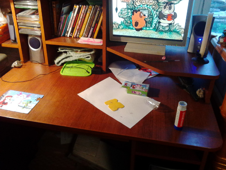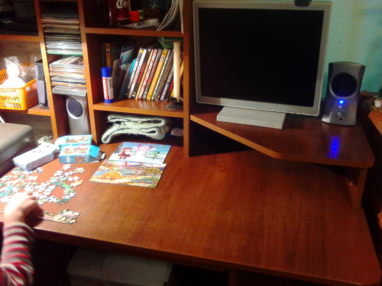 №5 Компьютерный стол (тоже не очень страшно, правда убирала я только со стола и с принтера(его не захватило), а как чесались руки еще и на полках порядок навести, но не все сразу)