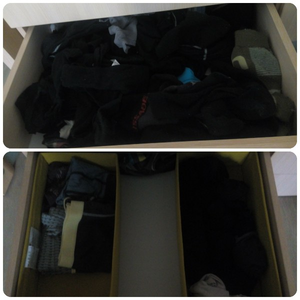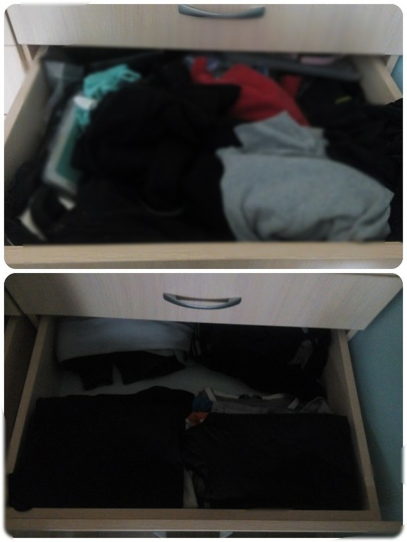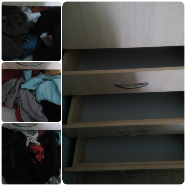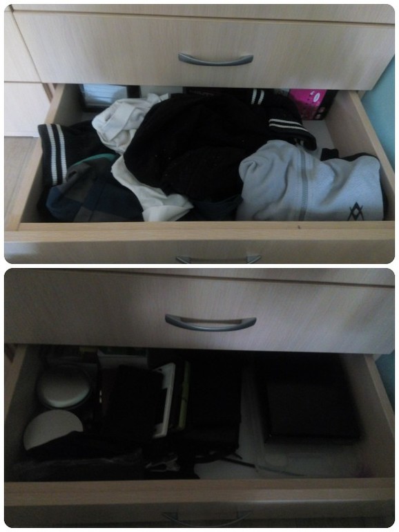 Пока ребенок спал (1,5 часа) я выгребла все 6 ящиков, перебрала и сложила вещи на место.