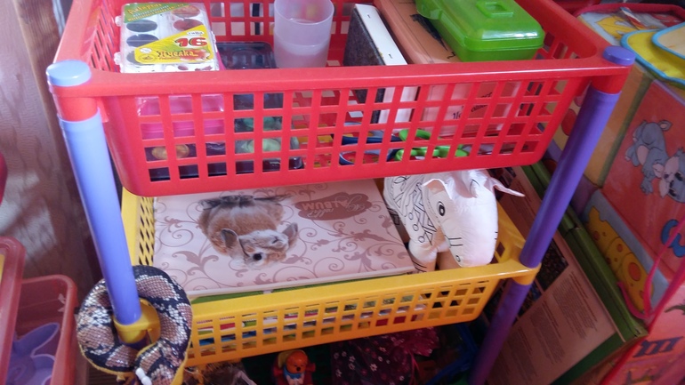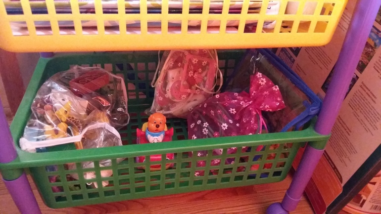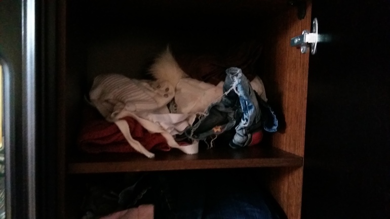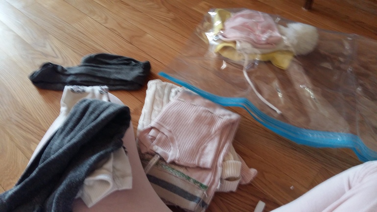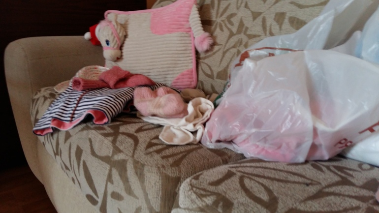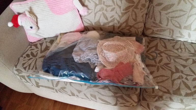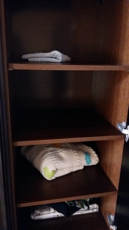 А потом шел шкаф, в который переедет одежда старшей дочери (освобождая полки для грудняка). Опять же сфотографировпла только верхнюю полку: