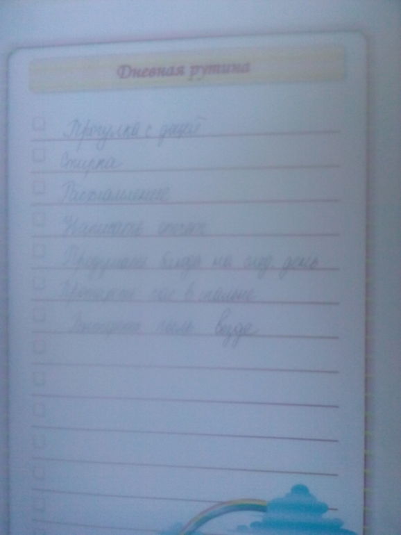 Отчитываемся по заданиямНе писала долго отчёт так как немогла определиться с Рутинами. Т.е начала их записывать, черкать, переправлять, а сегодня поняла, что записать все сразу и не получиться и первое время они у меня будут меняться. Поэтому черновой вариант