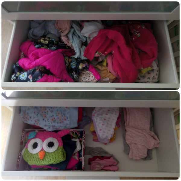 Очень много вещей отложила (ждем, когда двоюродные сестры мужа начнут рожать)))), одну вещичку на продажу. Часть вещей в стирке, поэтому ящик кажется полупустым.