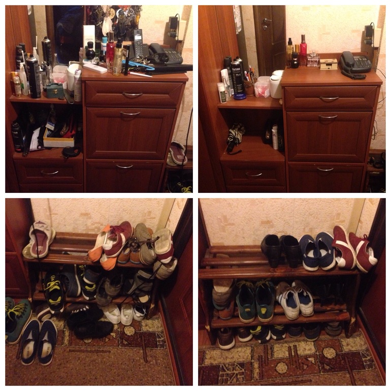 Очень обрадовало, что пришлось подумать над тем, что разбарахлять, На счастье оказалось не так уж и много, в четверг пятиминутку уделила ванной комнате, выкинула кучу пустых и просроченных бутыльков. Свою одежду и комод достаточно недавно освобождала, отдала целый ворох вещей (наконец то призналась себе, что S размера я уже врядли буду)). Нужно перебрать верхнюю одежду, повесить некуда, а ничего не носим. А пятнадцатиминутку планирую потратить на страшное ))) есть у нас такое место в доме, под названием "тещина комната" в простонародии чулан. Там инструменты, банки-закатки, дорожные сумки, а так же туда швыряется всё, чему не находят примирения..))