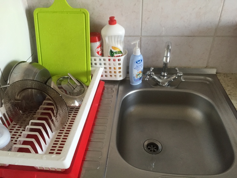 10-00 - после завтрака продолжаю утренние рутины, мою туалет коту, выполняю полет с ёршиком, и конечно же мою посуду.