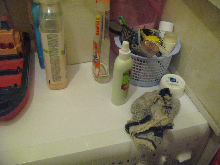 Быстро в туалет. После быстро почистила ёршиком толчёк, а ободок протёрла тряпочкой смоченной в белизне(я так всегда делаю, а белизну держу тут же в распылителе от ср/ва для мытья окон)