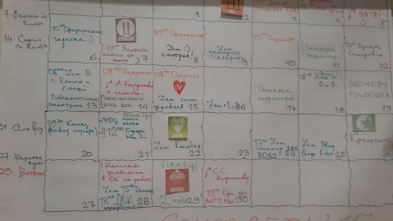 Да, календарь семейный, висит на кухне. Для каждого в нашей семье - свой маркер цветной. Очень удобно!!) Ярко и жаже увлекательно. Распечатала небольшие стикеры, клеим на даты, дни рождения и праздники. С обувью у меня по-началу не складывалось.. потом решила попробовать - мне очень понравилось! Сразу чувствуешь себя очень собранно. Летом хожу в сланцах, в остальное время в балетках)