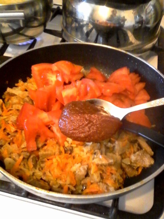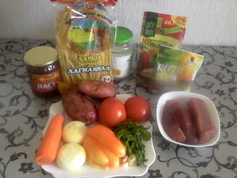 мы ее добавим в Ваджи-так называется мясо с овощами, а сама лапша- Лагман, отсюда и название блюда.