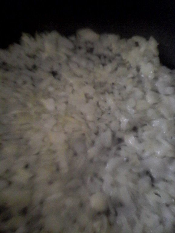 Лук режем полукольцами, но у меня мелко порезан, я его так от мужа "прячу", а то он думает, что не ест лук.
