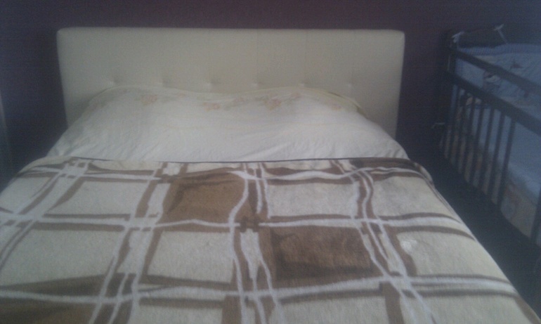 Наша ( не смотрите на покрывало мое ужасное, решила пока хорошее не покупать, т.к. маленький деть, а он у нас любит и попрыгать и поваляться на кровати, может что то принести и пролить или намазать, поэтому решила пока что пусть будет просто плед)