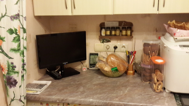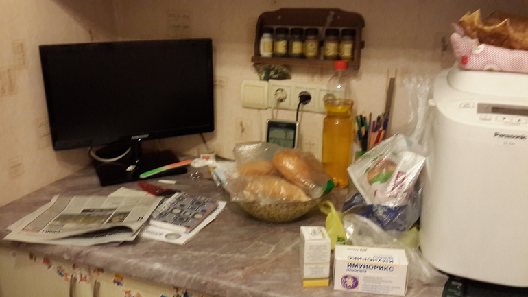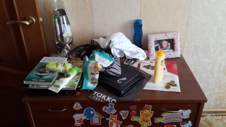 Еще остались Хотпосты в детской, компьютерный стол, часто бывает завален диван, но сегодня он был чист и иногда подоконник на кухне.