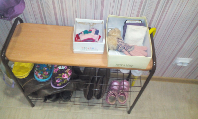 5. Полка в коридоре (больше там мебели нет никакой, поэтому пока что всё в таком виде, спасаюсь как могу