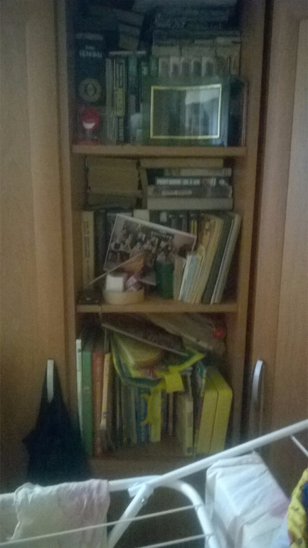 Книжные полки в гостиной. Хотя вот они скорее захламлены, т.к. там нет активного "горения" - редко они пополняются чем-то, просто давно надо разобрать.