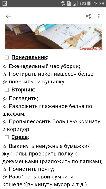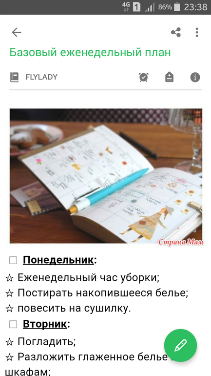 Базовый недельный план выглядит так (скачала коасивую картинку и отправила все это в Evernote):