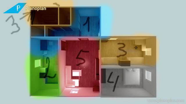 На зоны поделила так, расскрасила план дома.Потом вычитала, что стиралку относят к зоне 2.Но она у меня стоит в ванной.Можно я отнесу её к зоне ванной?Если надо будет по заданию, то буду считать, что она в зоне прачечной.И еще есть крылечко=)Пока только бетонные ступеньки, там и убирать нечего, иногда подметаю их, в зону 1 добавила.Есть еще миникомната- там висит газовый котел и полка с инструментами(банка от кофе с гвоздями- святая святых)- туда я не хожу вообще.