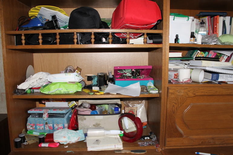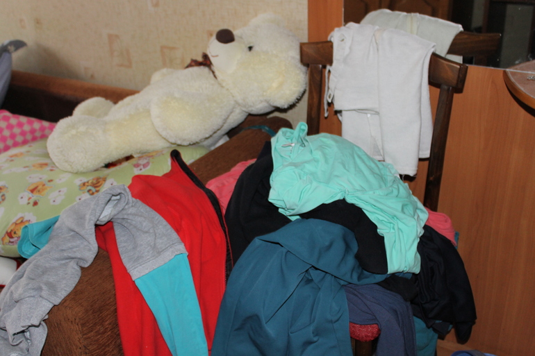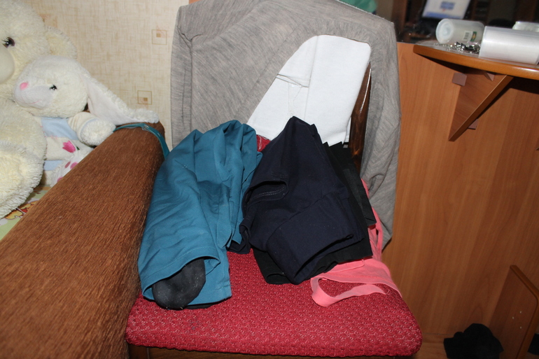 Расхламила пару полок в шкафах. Получился пакет одежды мужа на выброс. Он у меня хомяк(