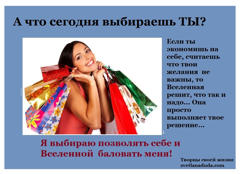 Не забудьте написать о том как вы балуете себя. Давайте хвастаться =)