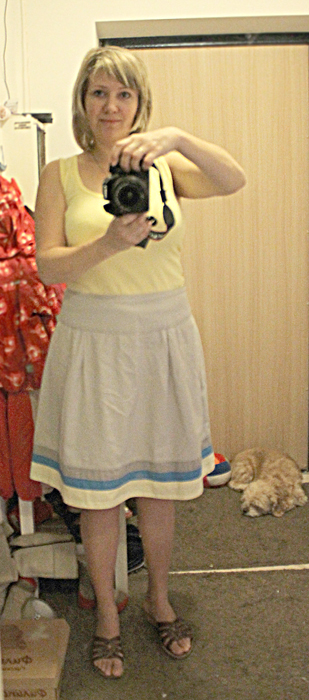 Отчитываемся по заданиямДоброе утро! Поиск домашней одежды для меня проблемная тема, так как дома у нас тепло ,больше 27 градусов. Мне во всем жарко. Накупила этим летом маечек, сегодня одела одну из них. А юбку одела летнюю хлопковую, которую носить на улице уже не буду, ей несколько лет. Проблема только, что она мнется и светлая. На сколько ее хватит... Дома одежда, которую я ношу быстро превращается в хлам, от частой носки, стирки, пятен...