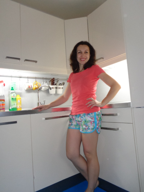 Я столкнулась с тем, что мне нечего надеть. Много одежды стало велико, она висит как на вешалке. Часть отдала маме. Дома жарко. Надо купить себе одежды, хотя бы пару комплектов. Достала майки и шорты с лета.