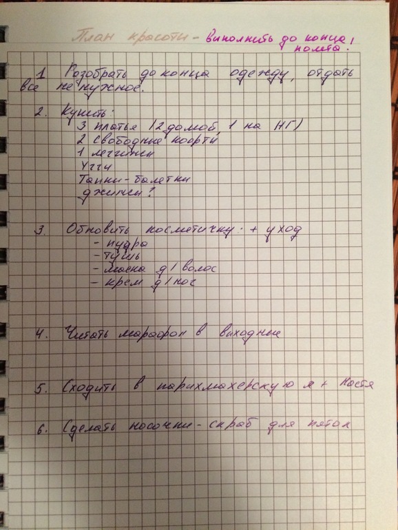 Но и это еще не все )) Переписала в свой новый КЖ вчерашний план красоты, чтоб уж наверняка, буду выполнять под галочку, поставила цель все переделать до конца полета!