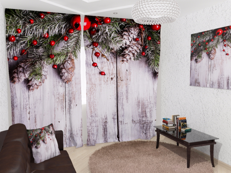 Спасибо! А по существу вопроса: занавески, как на фото, сьедают пространство, обьем и даже саму елку, если она стоит в той же комнате. Слишком много деталей в красном цвете меня лично нервируют. Попробовала уже многое из предложений на фото (накидки на стулья, декорации, подвески и т.п.). Решила для себя, что достаточно развесить на стенах и светильниках шарики, поставить елку и купить новогодние салфетки. И все:)