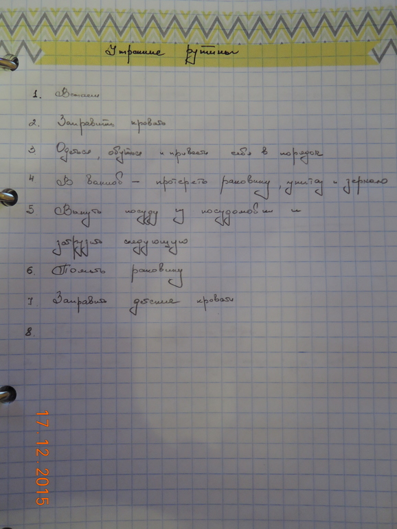Александра в FlyLady 10 лет Взлет 93 день 8 Отчитываемся по заданиям Записала свои рутины))) далее фото еще надо редактировать Посмотрите еще 20 записей на эту тему Отменить Ответить Ирма Молодец! Редактировать будешь со временем, когда поймешь что тебе действительно нужно 17.12.2015 Ответить 93/9 Взлет 93 день 9 Чаты Беременных Выберите чат: Январята-2026 Февралята-2026 Мартята-2026 Апрелята-2026 Майчата-2026 Июнята-2026 Июлята-2026 Августята-2026