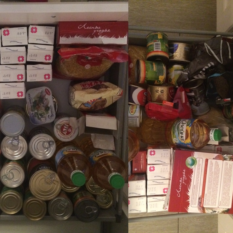 Еще успела разобрать ящик с консервами, после переезда муж покупает консервы, какими-то промышленными объемами ):