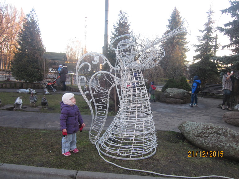 В нашем районе тоже ни Новым годом ни зимой даже не пахнет, в 5 мин ходьбы от нашего дома есть маленький рынок, всего 2 ряда, и сейчас этот рынок хотят закрыть и на его месте построить большой торговый центр, поэтому последние несколько месяцев хозяева киосков ничего нового не закупали, новогодние товары в том числе, сейчас из новогоднего выставили на продажу только то, что не продалось в прошлом году. А вот в центре города уже давно стоит елка, несколько дней назад ее нарядили, развесили иллюминацию. Вчера ездила на центральный рынок - там все пестрит и светиться. А еще у нас в городе есть фабрика мебели, и у них во дворе стоят разные фигурки животных в натуральную величину, а перед Новым годом они украшают почти все елки(а елки там высокие) и также ставят новогодние фигурки - маленькие деревца и олени обмотанные гирляндами(вечером смотрится просто потрясно) и в этом году добавили нескольких ангелочков. Несколько дней назад мы ездили туда с дочкой(это было заданием адвент-календаря), наделала кучу фото, в воскресенье сделаю отчет о четвертой неделе, а пока вот