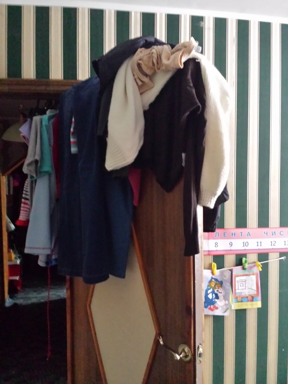 Отчет уже написала, приняла душ, лежу на диване с чашечкой кофе и понимаю, что есть еще она горячая точка. Это дверь в гостиной. Стыдоба!!! Представляю, прихожу в гости в подруге, а у нее на двери такая свалка.