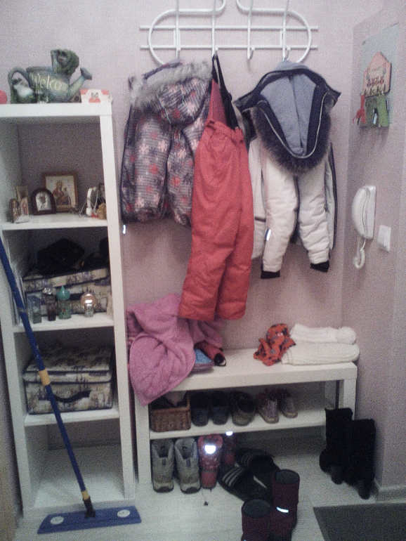 Когда я вошла в систему тумба в ванной и угол кухонной мебели стали с первого дня вместе в раковиной убираться поэтому там уже вторая неделя как порядок, а вот все остальное в процессе. Дальше фото прихожей, комода детского и моего стола прошу не пугаться стыдно, но показываю бардак