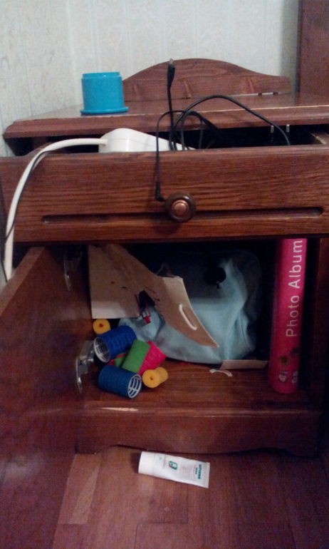Любимые печеньки не получились, вес стоит (неудиветельно, с любимыми-то печеньками), ребенок раздражает, муж болеет. Вобщем маму укусил циклоп. Но тем не менее, полы помыла, посуду тоже, еду приготовила и разобрала тумбочку прикроватную в зоне 1.