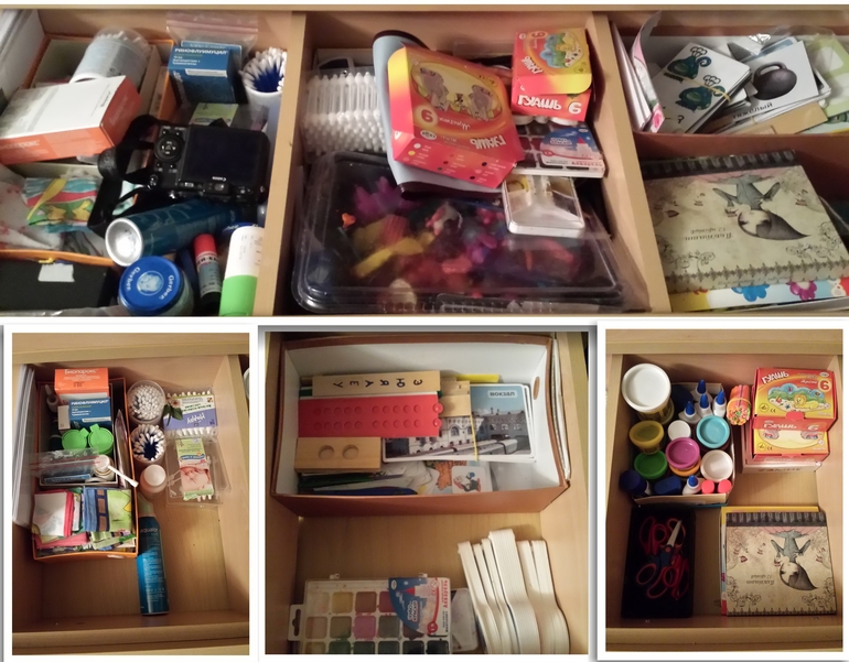 Место работы выбрано. Расхламляю верхний ящик комода и тумбу с косметикой.
