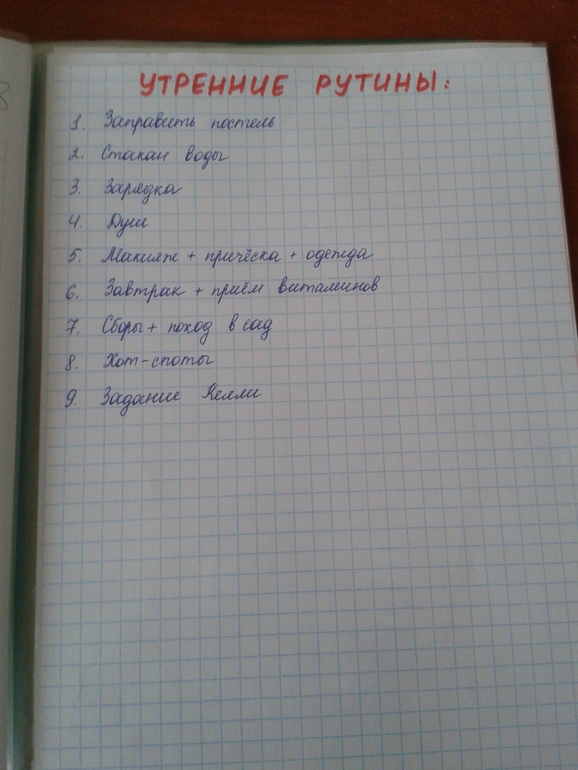 Настроение отличное, рутинки выполняются, даже без особого напряга, как-то даже в радость) И на выходных я тоже разбирала хотспоты, сделала 5-минутную уборочку в спальне. В общем я довольна) Сегодня, прочитав задание, оформила КЖ, знаю, что все еще будет меняться, доделываться, переписываться, но пока что у меня такой вариант.