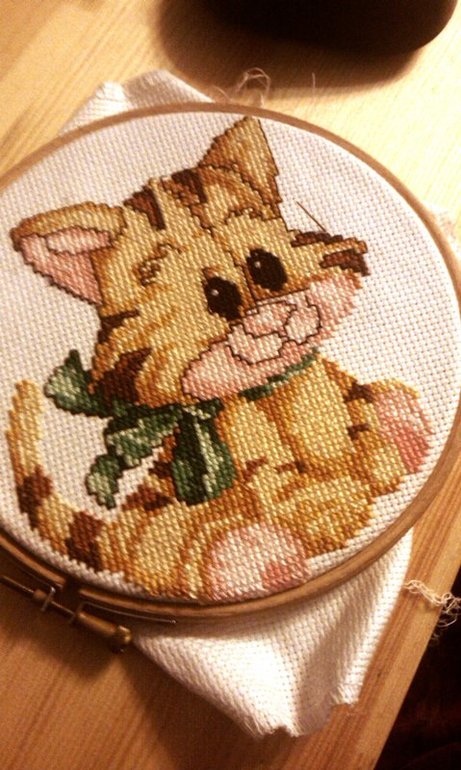 Пока Паша спит я работаю за компьютером и немного вышиваю котика для альбома "первый год". Скоро закончу