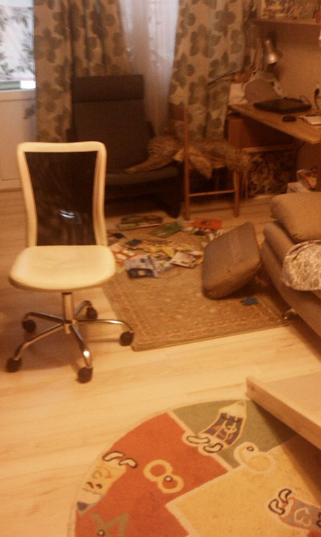 Потом быстренько собираю белье на стирку, иду в комнату и устраняю последствия вчерашней игры.