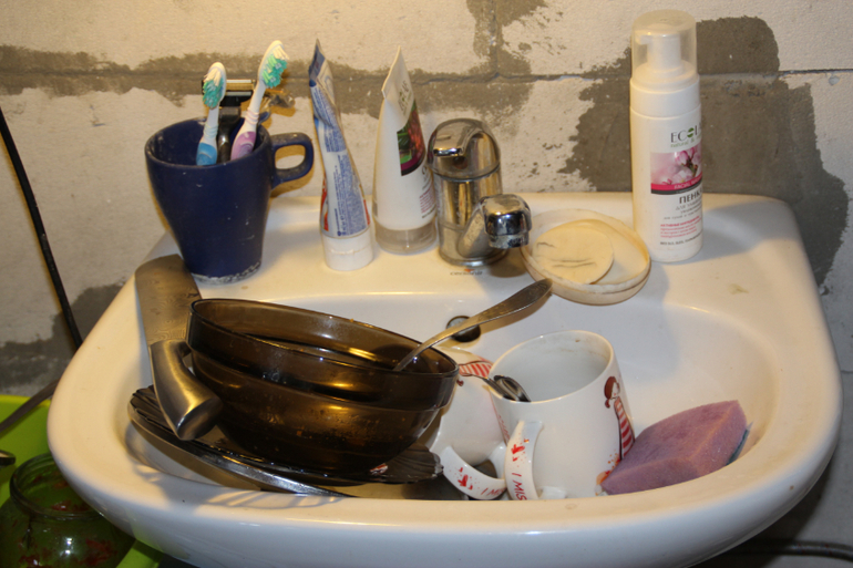 посуда у нас, кстати, чаще всего складывается в тазик.. нам удобно. да и занимать единственную раковину грязной посудой не хочется...