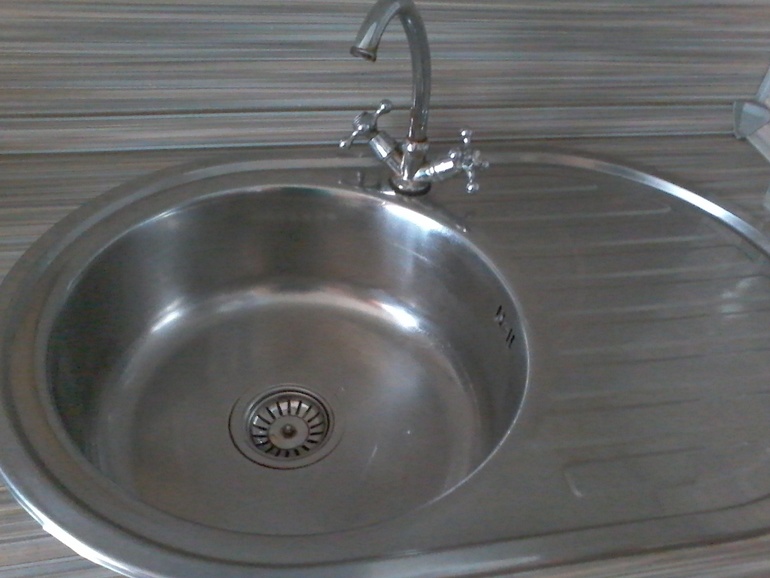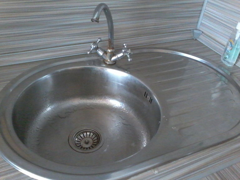 Раковину стараюсь держать в чистоте всегда, но есть "нюанс"-мой муж любитель покушать на ночь, и чистая вроде с вечера раковина превращается не в очень чистую с утра))). Как побороть эту привычку, пока ума не приложу. Ну вот собственно и сама раковина (на смеситель не обращайте внимания-его нужно заменить, пока деньги уходят на другие нужды).