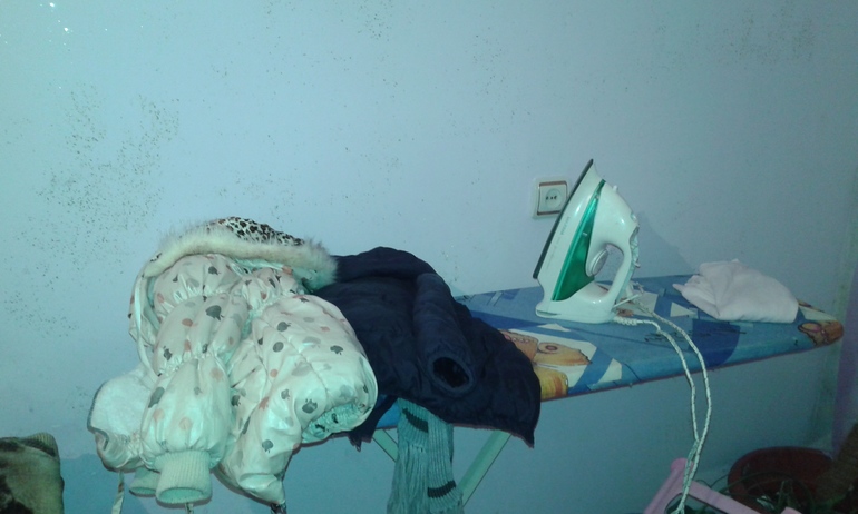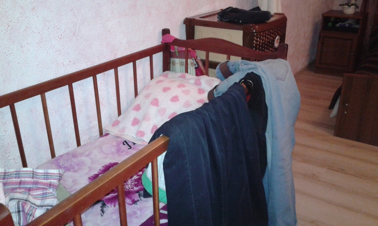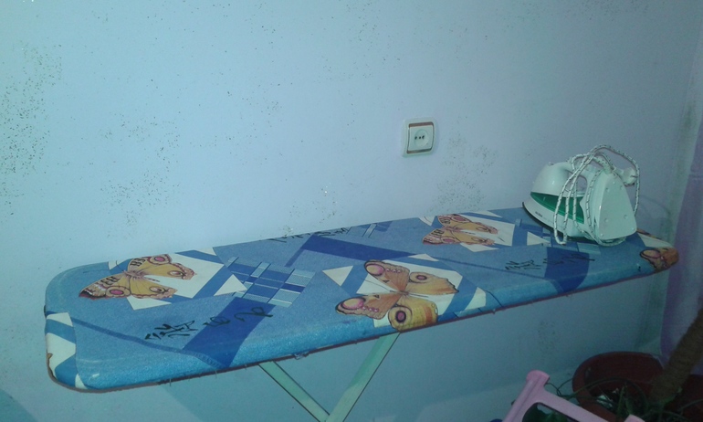 это гладильная доска, кроватка детская которая уже стоит просто для мебели) (у нас один маленький шкаф на 5 человек, и нет никакой прихожей, поэтому вещи часто висят на кроватке, а детские куртки на гладилке лежат, надо с этим что то придумать) и барная стойка, все потушила, но с приходом мужа и свекрови они вспыхнули опять