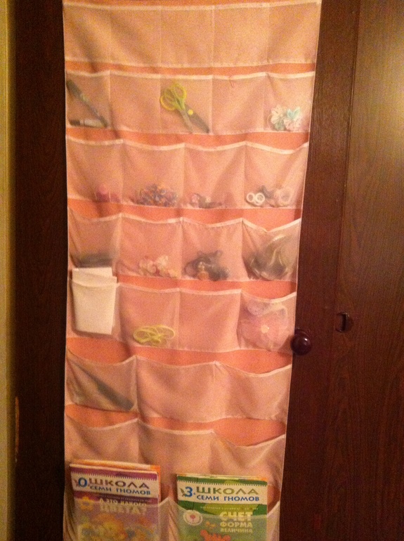 Думала с чего начать расхламление, но уже сил больше нет ходить мимо вот такой захламленной штуки, которая у нас весит на двери. Изначально это задумано было, для разного методического материала для детей, а потом там поселились и заколки, и чеки, и расчески и т.п. Вот моя работа и всего лишь за 15 мин: