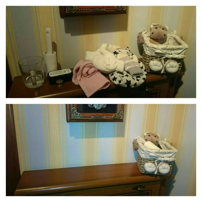Из хотспотов у нас входная тумба для обуви,там вечно стаканы "на дорожку попить", шапки,шарфы,варежки, деньги- все летит туда. Для совсем мелочи был поставлен бегемотик-корзинка,где хранятся блески для губ,кладутся ключи от машины.
