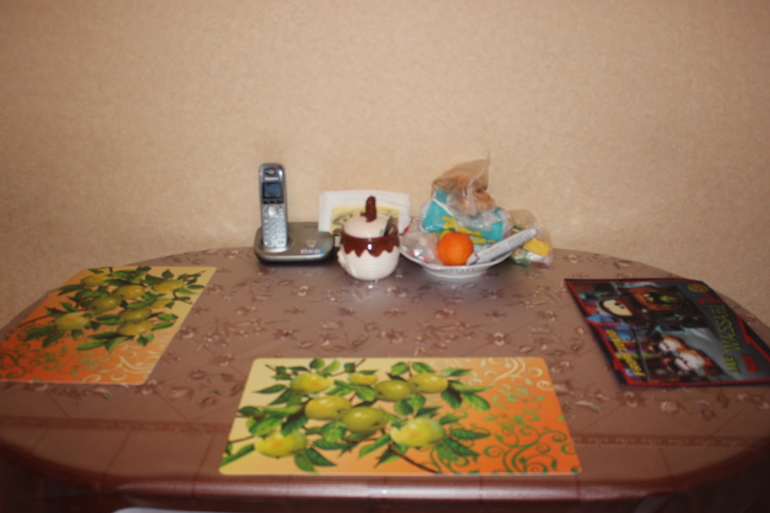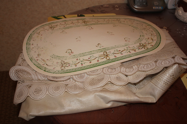 Купила новую скатерть и салфетки, сын на отрез отказался менять свою "старенькую":)