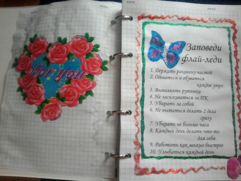 я уже тебе показывала чем я занималась в ту пятницу и субботу, так что задание про страничку Заповеди флай-леди я уже выполнила!!! Немного облагородила: