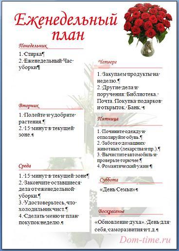 - 15-минутка (ЗК я не рекомендую, т.к. мы вчера составили план уборки, подходящий именно вашему дому)