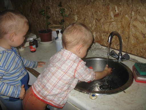 Это мой первый взлет, мальчишкам двух нет - посуду мыли))) Правда я заодно после этого полы на кухне помыла и всё вокруг, но помогали же)))