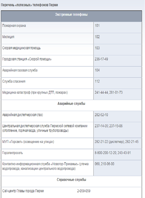 Также начала формировать таблицу со списком важных для меня номеров. Скрин вставлю, что у нас на сайте администрации города нашла. Все удобно и доступно)