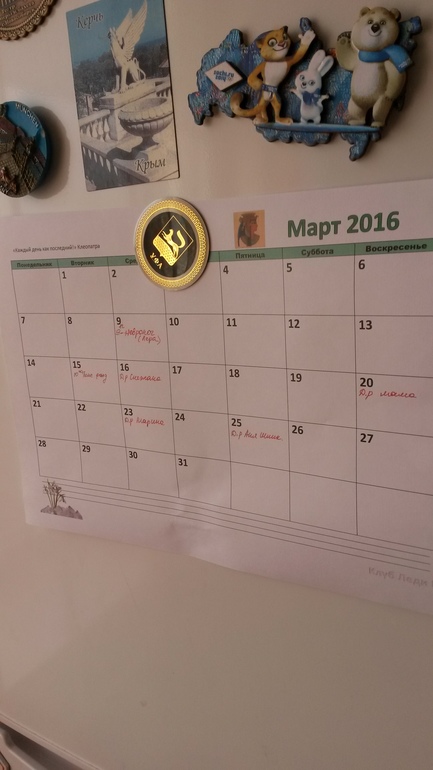 Распечатала на холодильник календарь! Оч. понравилась идея!