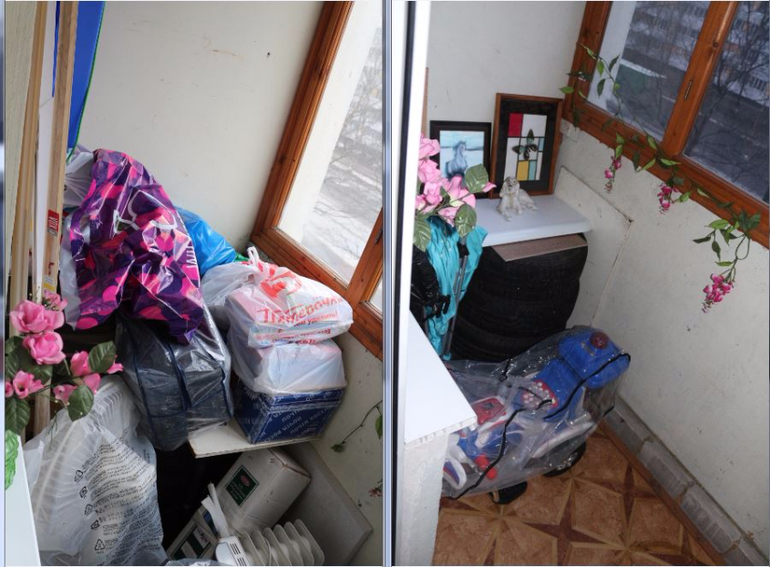 Задание совпало с исполнением моего желания - «хочу шкаф на дальней лоджии» :-))) . В связи с его установкой, я выбросила 227 вещей. Ух! Супер! Теперь просыпаюсь и не вижу, как на меня смотрят коробки-чемоданы-коляска через дверь лоджии. Спасибо огромное мужу!