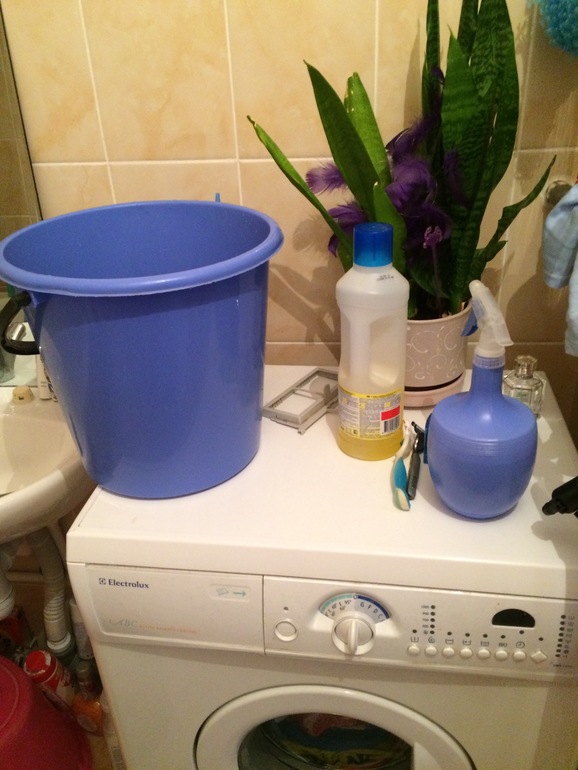 14:35 Моем полы.Ребенок разбирает полку в ванной и скидывает мне в ведро. Расческа и мое средство для снятия макияжа покупались с глориксом. Пришлось поставить ведро на стиралку))))