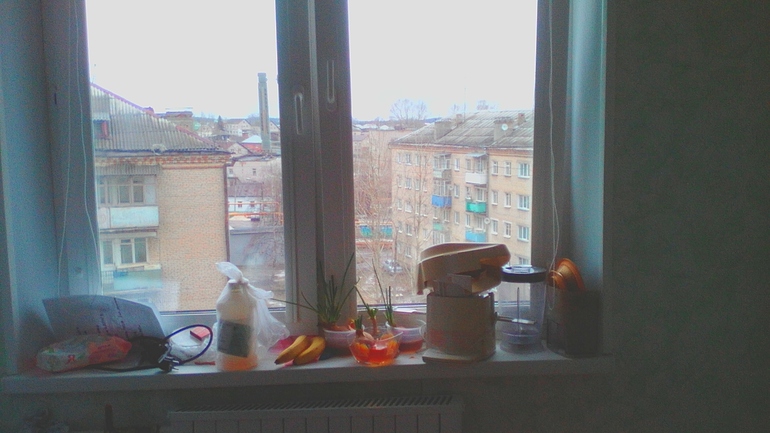 Ну и второй - подоконник на кухне. Первое время всегда он был чист, потом поставили туда соковыжималку (наивно полагали, что будем постоянно пользоваться), и понеслось... В общем, всё выкладываю, как есть.