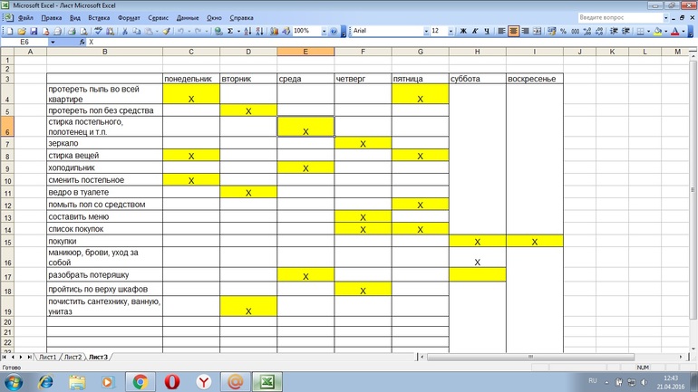 - Составить меню на след неделю 1 раз- Список покупок 1 раз